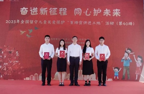為2023年度全國(guó)留守兒童關(guān)愛(ài)保護(hù)“百場(chǎng)宣講進(jìn)工地”活動(dòng)志愿者頒發(fā)聘書