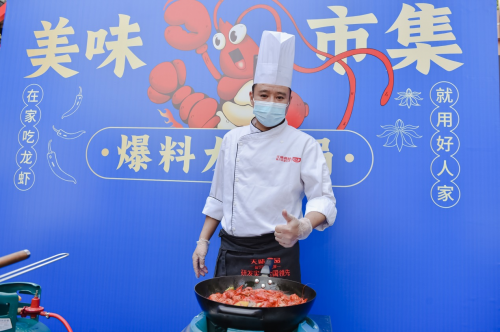 美味市集當然少不了美味。專業(yè)大廚來到現(xiàn)場爆炒3款小龍蝦,麻辣小龍蝦、辣鹵小龍蝦、蒜蓉小龍蝦……數(shù)百斤小龍蝦每天供應(yīng),營造了“視”“聽”“嗅”“味”“觸”的五覺體驗,讓用戶嘗過癮,也將好人家調(diào)料的豐富與美味根植于心。