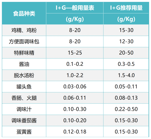 味精和I+G是互為依賴的增鮮劑,兩者合理并用時,可使菜肴鮮味躍增,達(dá)到味精無法達(dá)到的鮮味,我們稱之為“鮮味”的相乘效果。使用時,I+G添加量約為味精的2~5%,其增鮮效果可以提高3~6倍左右,而且對產(chǎn)品品質(zhì)有很大提升,使味覺明顯改善,甜、酸、苦、辣、鮮、香和咸味等更加濃郁而協(xié)調(diào),更接近天然食品的味道。