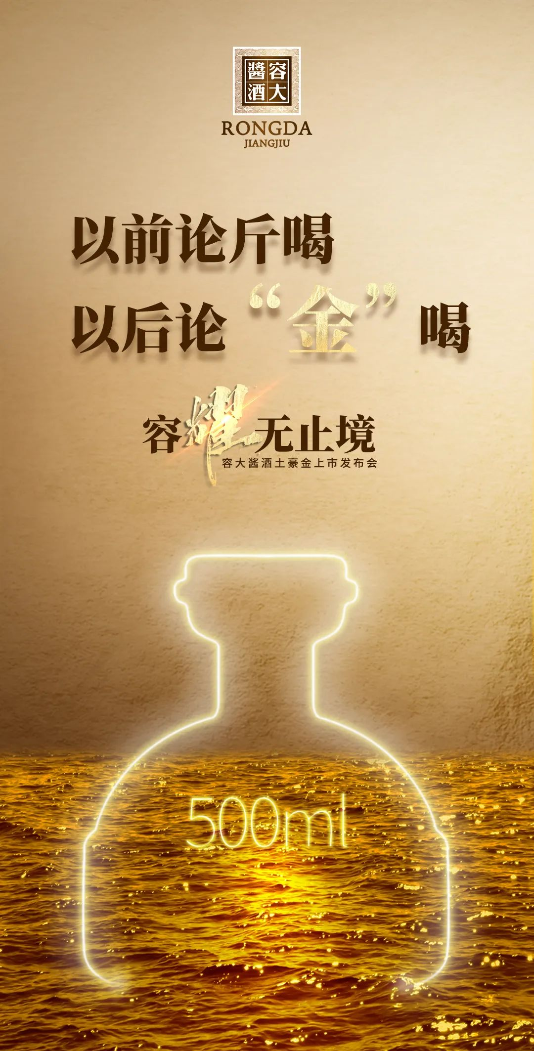 這是容大醬酒的手筆。4月下旬,容大醬酒戰(zhàn)略新品即將上市。樸實的宣傳語,透露出其口糧醬酒的市場定位;奢華的土豪金顏色,又給人無限遐想,讓人對其品質(zhì)有了更多期待。