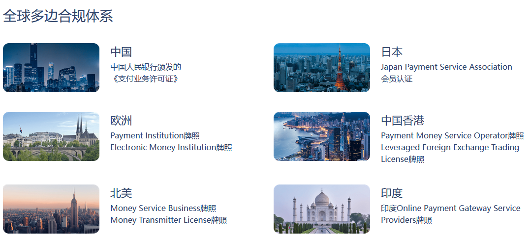作為資金流服務(wù)的關(guān)鍵環(huán)節(jié),支付在多數(shù)國家都是重點監(jiān)管的項目。在跨境匯兌、資金分發(fā)等服務(wù)中,支付牌照作為展業(yè)的基礎(chǔ),是企業(yè)合規(guī)能力的直接體現(xiàn)。多年來,PingPong福貿(mào)始終堅持“牌照先行,資質(zhì)先行”理念,致力于在全球范圍內(nèi)多個主要經(jīng)濟體國家及地區(qū)爭取獲得合規(guī)牌照,以打造堅實穩(wěn)固的全球多邊合規(guī)體系。目前已擁有中國、歐洲、美國、日本、印度、澳大利亞等主要經(jīng)濟體的數(shù)十張支付類牌照及認(rèn)證資質(zhì),是國內(nèi)少有的雙邊持牌支付企業(yè)。