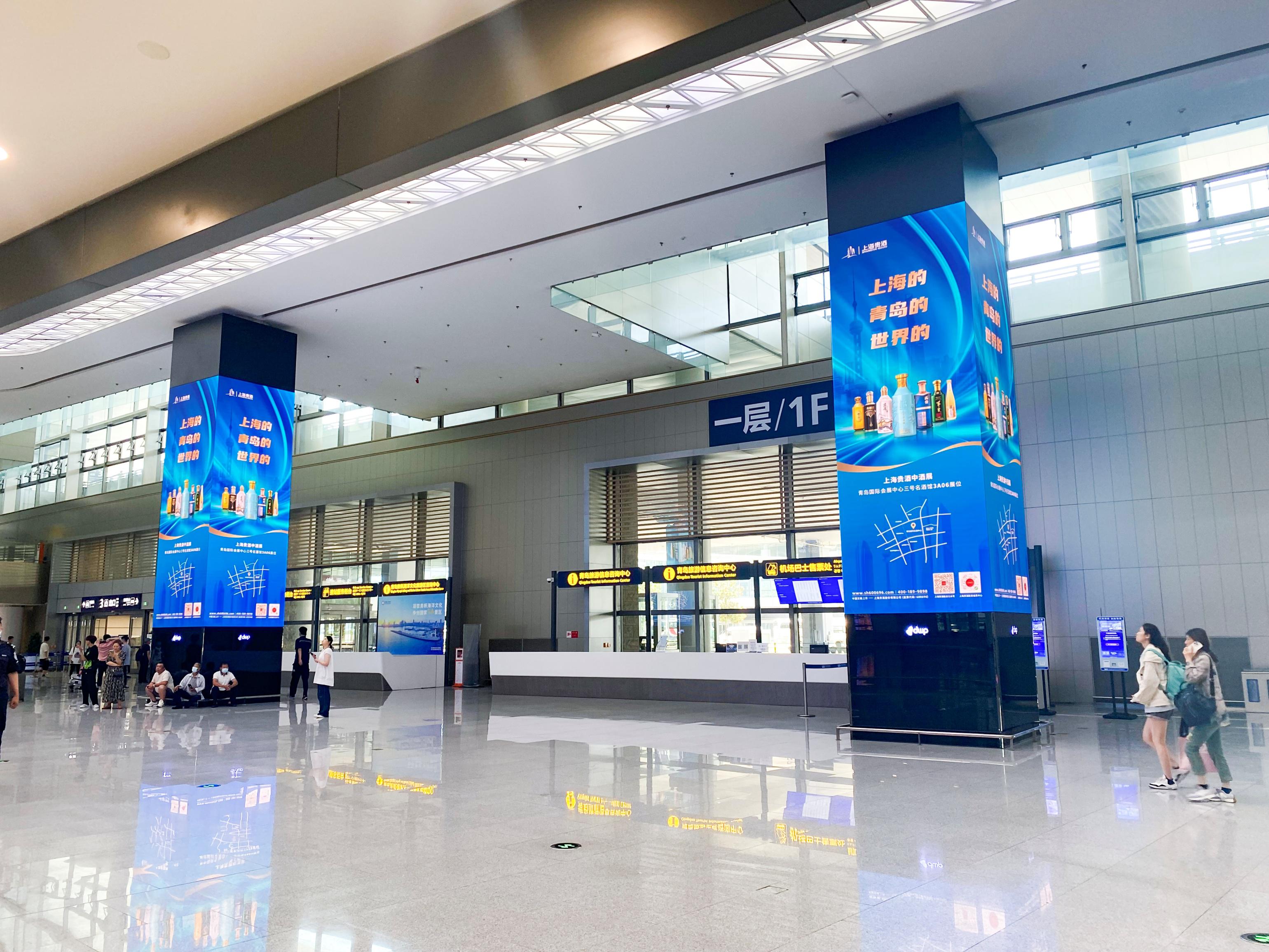 成功吸引廣大經(jīng)銷商關(guān)注的不僅僅是主展廳,還有“上海貴酒,上海的,青島的,世界的”這一醒目標(biāo)語的高頻展現(xiàn)。在青島膠東機(jī)場與青島北站等重點(diǎn)交通樞紐,上海貴酒全家福海報以及上海貴酒·君道、上海貴酒·高醬等明星產(chǎn)品巨幅海報率先登陸,霸屏安檢口、值機(jī)/候車大廳以及主要出入通道,出行場景全覆蓋;在展館現(xiàn)場,從展館入口到重要通道,從展廳到權(quán)威論壇,處處可見上海貴酒顯眼醒目、極具感染力的全家福廣告。讓來中酒展觀展選品的經(jīng)銷商伙伴從踏入青島的那一刻,就被強(qiáng)勢爆發(fā)的“上海貴酒力量”所感染。