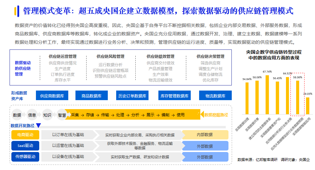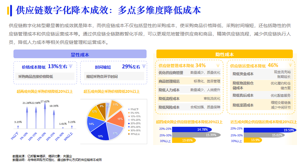 7月12日,《2023數(shù)字化采購發(fā)展報告》(下文稱《報告》)在第四屆國有企業(yè)數(shù)智化采購與智慧供應(yīng)鏈高峰論壇上重磅發(fā)布?!秷蟾妗酚蓛|邦智庫聯(lián)合中國物流與采購聯(lián)合會公共采購分會共同發(fā)布。今年《報告》以“擁抱數(shù)字供應(yīng)鏈”為年度主題,通過深入調(diào)研100余家企業(yè),與多方專家和企業(yè)深度探討,闡述我國企業(yè)正在“以采購數(shù)字化為切入點,帶動供應(yīng)鏈數(shù)字化建設(shè)”。解析“可預(yù)測的數(shù)智供應(yīng)鏈”、“全環(huán)節(jié)綠色低碳供應(yīng)鏈”、“多方共建共享的生態(tài)化供應(yīng)鏈”的數(shù)字供應(yīng)鏈新趨勢。并梳理多家知名供應(yīng)商和技術(shù)服務(wù)商典型案例,闡述數(shù)字供應(yīng)鏈最新解決方案。