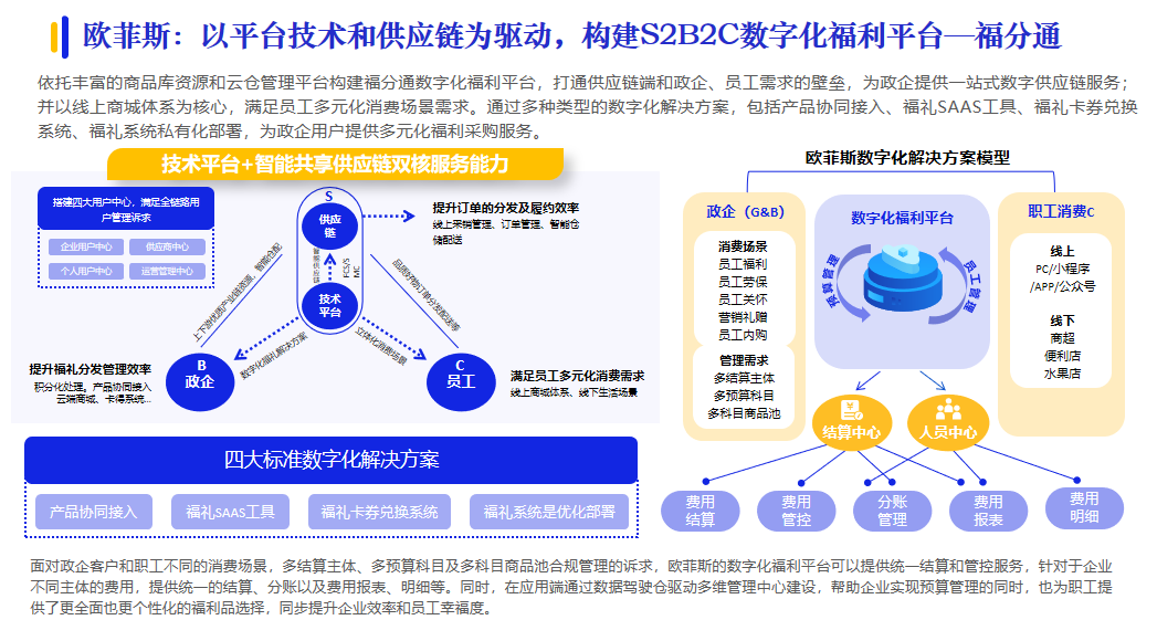 歐菲斯以平臺技術(shù)和供應(yīng)鏈為驅(qū)動,構(gòu)建S2B2C數(shù)字化福利平臺。