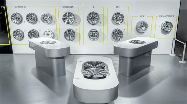 現(xiàn)場還展示了PLAY.STH的5個系列13款輪轂,分別為CROSS系列、X系列、GT系列、DES!GN系列、EV系列等,多款造型適配不同用車場景。這5個系列輪轂均為6061-T6 鋁合金材質(zhì)的鍛造輪轂,結(jié)構(gòu)強(qiáng)度高,成品輕量化。據(jù)了解,其中的CR01\CR02\CR03 款是國內(nèi)首批獲得 LM 認(rèn)證的輪轂,PLAY.STH所有輪轂產(chǎn)品在上市前均會主動完成車輪沖擊性能試驗(yàn)、車輪動態(tài)彎曲疲勞性能試驗(yàn)、車輪動態(tài)徑向疲勞性能試驗(yàn)等輪轂三大安全性能試驗(yàn),漆膜品控堅持更高要求的車規(guī)級標(biāo)準(zhǔn)。內(nèi)部輪轂及整車設(shè)計團(tuán)隊溝通配合,確保產(chǎn)品在造型出眾的同時,滿足安全可靠的基本要求。