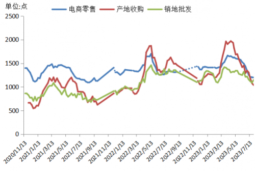 本期新華·宜昌秭歸臍橙產(chǎn)地收購(gòu)價(jià)格指數(shù)報(bào)1038.48點(diǎn),環(huán)比下跌3.69%,同比下跌34.10%;新華·宜昌秭歸臍橙電商價(jià)格指數(shù)報(bào)1199.13點(diǎn),環(huán)比持平,同比下跌10.05%;新華(中國(guó))臍橙銷(xiāo)地批發(fā)價(jià)格指數(shù)報(bào)1145.94點(diǎn),環(huán)比上漲5.31%,同比下跌12.72%。