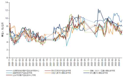 圖4 重點(diǎn)批發(fā)市場(chǎng)臍橙價(jià)格走勢(shì)