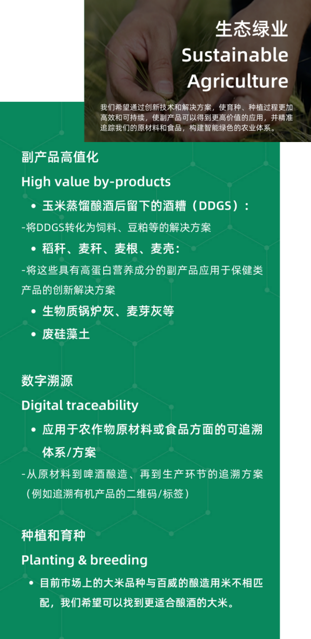 每一年,100+創(chuàng)新中心都會在價值鏈上梳理亟待解決的可持續(xù)發(fā)展挑戰(zhàn)議題并公開招募創(chuàng)新解決方案,目標是讓你的想法得到驗證并實現(xiàn)商業(yè)化應用,在試點完成后能夠獲得更大的商業(yè)合同,與百威中國以及更多伙伴建立強有力的合作。