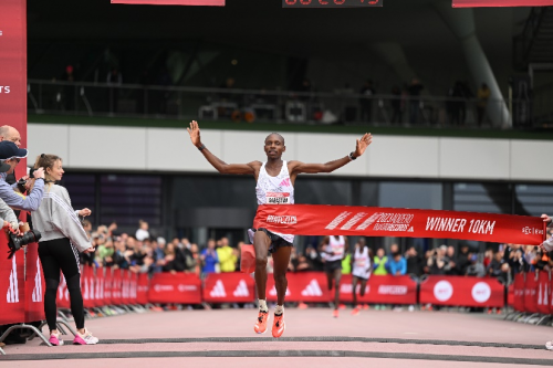 Kibiwott Kandie和Sabastian Sawe在男子10公里比賽中再次正面交鋒,上演了一場精彩酣戰(zhàn),最終Sabastian Sawe成功戰(zhàn)勝了世界紀(jì)錄保持者Kibiwott Kandie,將他的個(gè)人最好成績縮短了5秒,以26:49奪得冠軍——位列世界歷史上第五快的男子10公里成績。