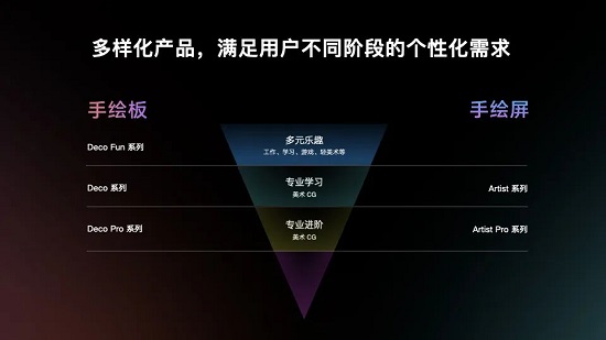 目前,XPPen 共有 2 大品類,5 大系列產(chǎn)品,包括數(shù)位板類的 Deco Fun、Deco、Deco Pro 系列及數(shù)位屏類 Artist、Artist Pro 系列產(chǎn)品。其中,Deco Fun 產(chǎn)品線系列面向多元樂(lè)趣用戶;Deco 和 Artist 產(chǎn)品線系列面向?qū)I(yè)學(xué)習(xí)用戶;Deco Pro 和 Artist Pro 產(chǎn)品線系列面向?qū)I(yè)進(jìn)階用戶。全新的產(chǎn)品布局,可針對(duì)不同成長(zhǎng)階段的用戶需求,打造從興趣入門到專業(yè)學(xué)習(xí)再到專業(yè)進(jìn)階的產(chǎn)品矩陣。