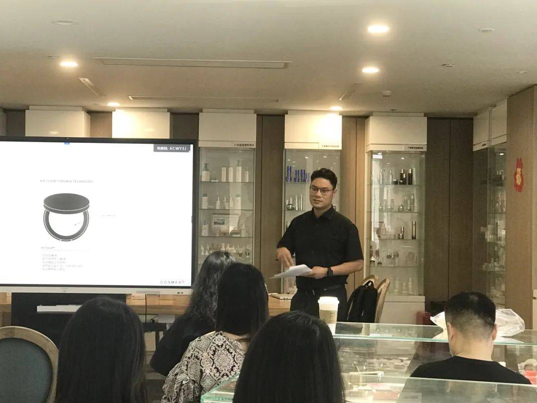 科絲美詩廣州研究所金成勇所長在《氣墊底妝品類發(fā)展趨勢(shì)及創(chuàng)新》研討會(huì)上發(fā)言