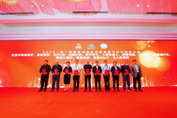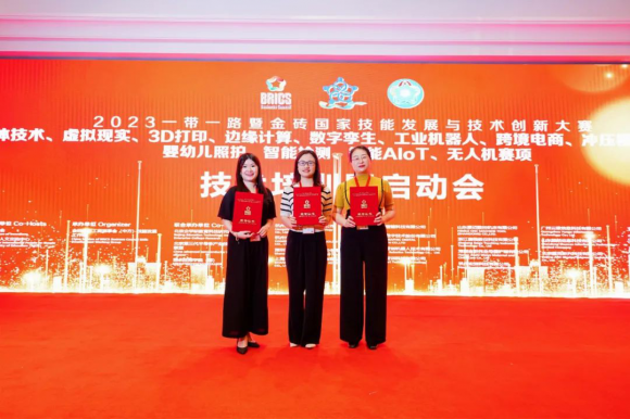 會上,金職偉業(yè)總經(jīng)理潘建明、董事長助理兼品牌運營總監(jiān)周娟、技術(shù)研發(fā)中心主任陳萬方、副主任李偲婧受聘為2023一帶一路暨金磚國家技能發(fā)展與技術(shù)創(chuàng)新大賽技術(shù)委員會技術(shù)委員。同時,金職偉業(yè)成功入選一帶一路暨金磚國家技能發(fā)展國際聯(lián)盟會員單位,并被授予榮譽證書。