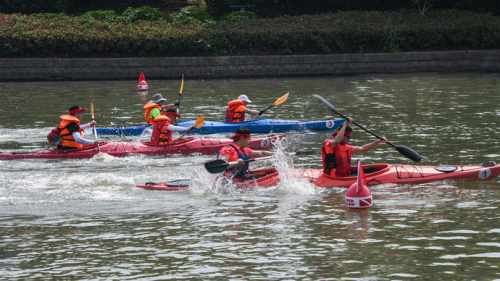 2023年5月13日,由上海市社會體育管理中心(上海市體育競賽管理中心)、閔行區(qū)體育局、新虹街道黨工委、新虹街道辦事處共同主辦,上海盈動(dòng)體育文化股份有限公司承辦,上海市船艇運(yùn)動(dòng)協(xié)會、江蘇省船艇運(yùn)動(dòng)協(xié)會、浙江省船艇運(yùn)動(dòng)協(xié)會、安徽省水上運(yùn)動(dòng)協(xié)會、上海申鐵投資有限公司聯(lián)合支持的2023年上海城市業(yè)余聯(lián)賽“新虹杯”長三角皮劃艇·槳板邀請賽在新虹街道華翔綠地公園水域隆重舉行,來自長三角地區(qū)的兩百余名水上運(yùn)動(dòng)愛好者在新虹街道華翔綠地公園水域乘風(fēng)破浪,踏水前行。