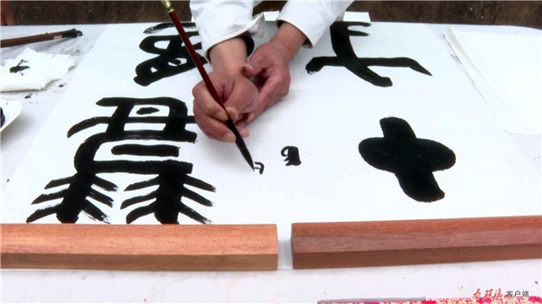 在農家小院,閻正正在聚精會神地揮毫潑墨,他在筆墨的運用上別出心裁、匠心獨運,流暢的線條蒼勁有力,書法作品淋漓盡致地展現(xiàn)于尺幅之上。談起他創(chuàng)作的靈感,閻正說,“莊浪歷史悠久、文化底蘊深厚、森林植被覆蓋率高,儼然一幅天然山水畫。莊浪縣云崖寺自然風光秀麗,石窟藝術精美,有遠山、有水庫、有寺廟,它完全具備中國畫的每一個條件?!?/p>