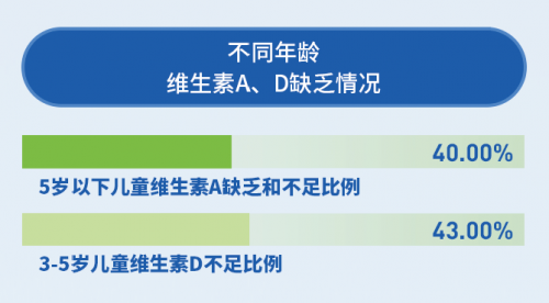 隨著生活水平的提高、知識的普及,多數家長都意識到提升孩子免疫力的重要性,但在提升孩子免疫力的方法上,調查報告顯示,家長關注重點前三位因素是運動、飲食、睡眠,對營養(yǎng)補充的重視程度稍有欠缺。很多家長覺得日常飲食可以提供足夠的營養(yǎng),事實上,“吃飽吃好不等于營養(yǎng)均衡”。有專家指出,我國兒童營養(yǎng)不足問題依然存在,鈣、鐵、維生素A、維生素D等營養(yǎng)素攝入不足還十分常見,尤其是維生素AD的缺乏現(xiàn)狀更不容樂觀。我國5歲以下兒童維生素A缺乏和不足的比例超過40%,3-5歲兒童維生素D不足率為43%。