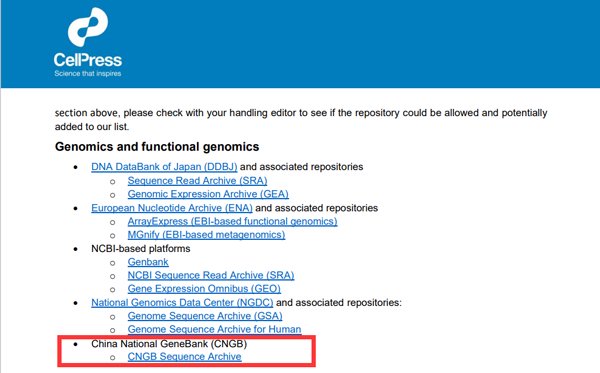 此前CNSA已獲得Wiley、Oxford、Science系列期刊等多家國(guó)際出版機(jī)構(gòu)/期刊認(rèn)可,本次被Cell Press收錄標(biāo)志著CNGBdb組學(xué)數(shù)據(jù)標(biāo)準(zhǔn)和數(shù)據(jù)庫(kù)體系在國(guó)際認(rèn)可方面持續(xù)提升,全球科研人員在Cell Press系列期刊投稿,可以選擇CNSA歸檔并共享科研數(shù)據(jù)。