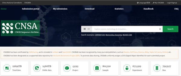 CNGBdb的存儲(chǔ)功能由國(guó)家基因庫(kù)序列歸檔系統(tǒng)(CNSA)負(fù)責(zé)。CNSA是一個(gè)支撐全球組學(xué)研究成果匯交和管理的系統(tǒng),致力于多組學(xué)數(shù)據(jù)(基因組、轉(zhuǎn)錄組、代謝組、單細(xì)胞和空間轉(zhuǎn)錄組等)的開放和共享,為全球科研人員提供更加安全、穩(wěn)定、可靠、便捷的數(shù)據(jù)歸檔服務(wù),促進(jìn)多組學(xué)數(shù)據(jù)的再利用,推動(dòng)全球生命科學(xué)的發(fā)展。