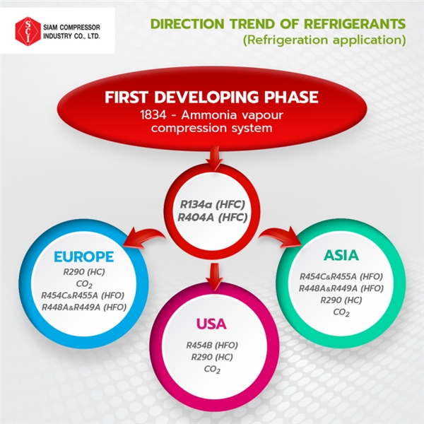人工制冷始于 17世紀(jì)50 年代中期,1834 年第一個(gè)使用氨的工作蒸汽壓縮系統(tǒng)面世。另一方面,氨有毒且對(duì)健康有害。 直到今天,科學(xué)家們?nèi)栽诶^續(xù)開發(fā)和研究更好的制冷劑。 由于制冷劑在每個(gè)國(guó)家/地區(qū)的使用方式不同,為了提供清晰的解釋,我們將按國(guó)家/地區(qū)組對(duì)這些趨勢(shì)進(jìn)行細(xì)分。