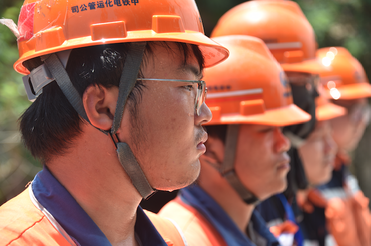 11點55分,封鎖命令一下,劉冉一馬當(dāng)先帶著大家沖到了線路上。由于鐵路線兩邊幾乎沒有任何遮陽的物體,經(jīng)過一上午的暴曬,鐵路線上的溫度已經(jīng)高達(dá)49.8℃,而現(xiàn)在頭頂上的太陽任然不斷地給鐵路上的道砟加熱,此時的鐵路線上,就像是一個巨大的烤箱。劉冉看著遠(yuǎn)處地面上的熱浪,拽了拽濕透后緊貼后背的衣服,招呼著后面的員工“大家動作快點,天窗只有109分鐘,不僅要檢修500米的設(shè)備,還要處理3處缺陷?!?/p>