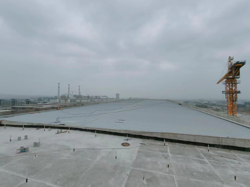 5月3日,隨著最后一塊壓形屋面板成功就位,由中鐵電氣化局集團(tuán)施工的凱賽(太原)生物材料有限公司DN項目-340單元土建項目C區(qū)鋼結(jié)構(gòu)屋面順利封頂。