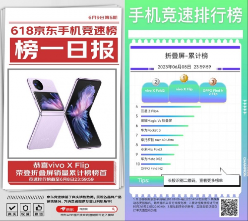 vivo X Flip榮登京東618折疊屏手機(jī)銷量累計榜榜首 跟榜買手機(jī)省錢又省心