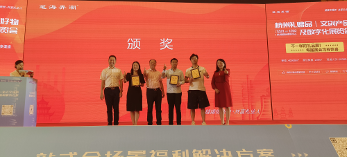 次日,6月28日,貴州禮品資源對接會晚宴暨“中國好禮品大賽”貴陽專場頒獎典禮在貴陽世紀金源大酒店隆重舉行,入圍貴陽專場初賽的獲獎企業(yè)選手和入圍復賽的獲獎企業(yè)選手依次走上舞臺,于臺前接受頒獎并合影。