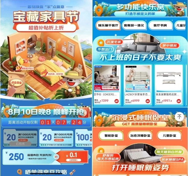 為了滿足“輕改大隊”的煥家需求,8月10日晚8點,京東寶藏家具節(jié)全面開啟,打出“即刻煥新 ‘家’點新意”的消費主張,聯(lián)合芝華仕、喜臨門、顧家家居、雅蘭、樂歌、源氏木語等家具大牌構(gòu)建多功能快樂窩、沉浸式睡眠臥室、氛圍感電競房、智能陽臺、兒童學習區(qū)等多趨勢場景,并聚焦年輕人鐘愛的奶油風、原木風、侘寂風等高顏值風格,奉上眾多能讓生活增加新鮮感的寶藏家具好物。想要和李女士夫婦一樣,在不拆墻體的情況下,通過添置家具單品來極速煥新家的消費者,可以從中找找靈感,并選購心儀的寶藏家具。