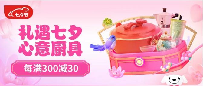 愛(ài)一個(gè)人,莫過(guò)于想陪TA一日三餐四季。值七夕節(jié)來(lái)臨之際,京東開(kāi)啟“禮遇七夕 心意廚具”主題活動(dòng),聯(lián)合蘇泊爾、炊大皇、雙立人、WMF、比樂(lè)蒂等核心大牌上新七夕限定禮盒,同步甄選高顏值廚具好物,帶來(lái)覆蓋智能保溫杯、茶具、咖啡具、酒具、餐具等多樣化的節(jié)日禮贈(zèng)選擇,全場(chǎng)每滿300減30,為消費(fèi)者輕松開(kāi)啟充滿煙火氣的七夕浪漫之旅。