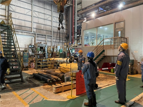 專、研在這里,抓住重點迎難而上,這次定修中有好多項目首次碰到,對這些史無前例的吊運作業(yè),精心組織、周密部署、根據(jù)各機組的空間結(jié)構(gòu)制定的吊運方案,尤其是3#CGL熱鍍鋅C808機組鋅鍋技改項目增加鋅鍋感應(yīng)加熱器線圈套裝任務(wù),中冶寶鋼基層單位認(rèn)真梳理吊裝成功的經(jīng)驗,大膽創(chuàng)新,建議施工方采用三級指揮方式進行指揮吊裝作業(yè),并使用專業(yè)工具橋架直接吊運,兩端使用麻繩做牽引固定,從C808機組9層平臺至上而下,省略了諸多中間環(huán)節(jié),打破崗位壁壘的束縛,僅僅只用了一個晝夜的時間,鋅鍋感應(yīng)加熱器線圈順利吊裝就位。比原定計劃提前了一天時間。