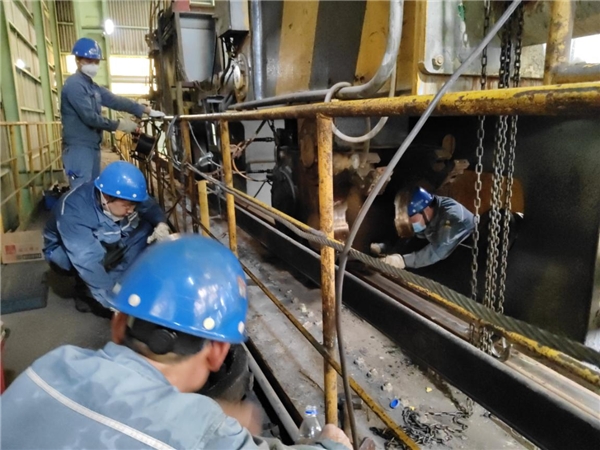 7月11日,正值出梅入伏的天氣,中冶寶鋼基層單位用時(shí)10多個(gè)小時(shí)順利完成熱軋廠1580區(qū)域31號行車車輪更換任務(wù)。