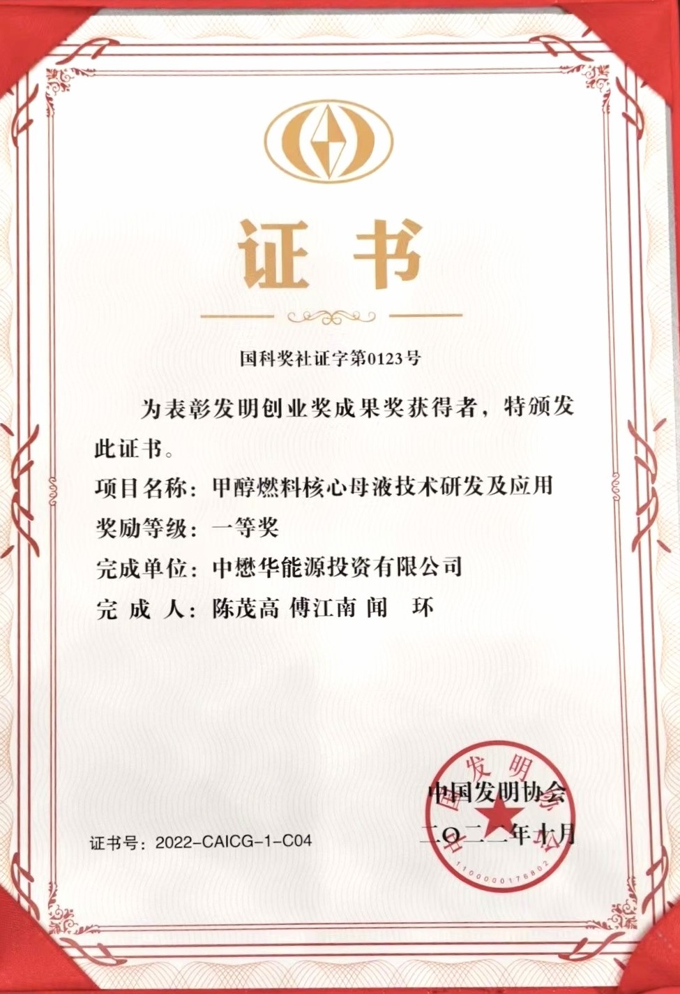 中懋華能源榮獲“發(fā)明創(chuàng)業(yè)獎”一等獎