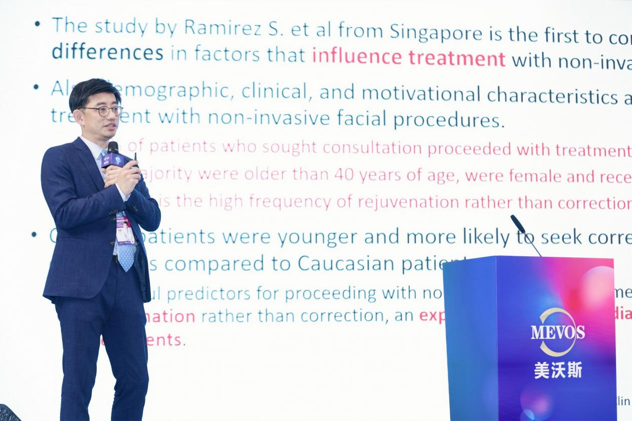 5月5日,美沃斯國際醫(yī)學(xué)美容大會特邀嘉賓——黃柏翰皮膚??泼廊葆t(yī)學(xué)診所黃柏翰醫(yī)師在分享全面部輪廓注射經(jīng)驗(yàn)時提到,注射填充物能實(shí)現(xiàn)明顯面部改善效果,其中膠原蛋白填充劑因其不透明性,能夠有效降低丁達(dá)爾風(fēng)險,因而成為醫(yī)師首選填充物之一。黃醫(yī)師在演講中特別指出,東方人面部輪廓偏寬,醫(yī)師在進(jìn)行臨床診療時,應(yīng)根據(jù)東方人面部老化特點(diǎn)以及求美者需求進(jìn)行產(chǎn)品選擇和方案設(shè)計(jì),盡量使臨床方案實(shí)現(xiàn)個性化、高效化。黃醫(yī)師表示,注射填充劑的量沒有公式可言,醫(yī)師要成為一名雕塑家,用雙手打造求美者未來的美麗!