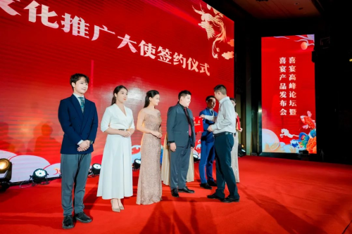 在發(fā)布會期間,小角樓與多方合力,不斷拓展“喜事喜宴喜酒”的多維引領覆蓋面,更與河南廣播電視臺主持團隊“六六大順主持團”正式簽約,將宴會氣氛推向高潮。