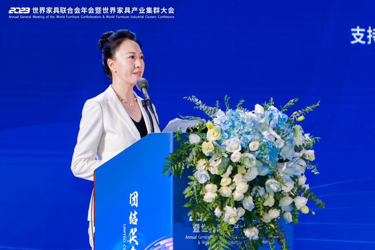 世界家具聯(lián)合會(huì)秘書長(zhǎng)、亞洲家具聯(lián)合會(huì)副會(huì)長(zhǎng)兼秘書長(zhǎng)、中國(guó)家具協(xié)會(huì)副理事長(zhǎng)兼秘書長(zhǎng)屠祺女士向全體與會(huì)嘉賓作《全球家具行業(yè)發(fā)展報(bào)告》。