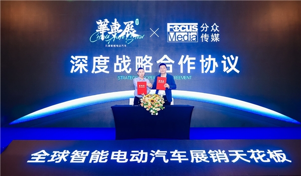 發(fā)布會現(xiàn)場,還進行了CAS華車展與分眾傳媒深度戰(zhàn)略合作簽約儀式,華墨集團CEO王國平與分眾傳媒董事長江南春共同簽署了“助力全球智能電動汽車品銷雙贏”戰(zhàn)略合作。