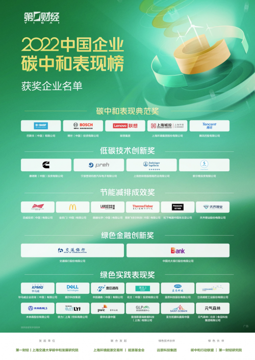 2023年4月22日下午,首屆中國企業(yè)碳中和表現(xiàn)榜頒獎盛典在上海隆重舉行,29家在碳中和進(jìn)程中表現(xiàn)出色的企業(yè),分獲5大獎項。