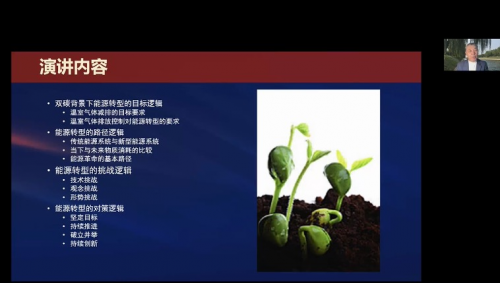 中國能源研究會常務(wù)理事、紅杉中國投資合伙人李俊峰通過視頻演講的形式,從雙碳背景下能源轉(zhuǎn)型的目標(biāo)邏輯、路徑邏輯、挑戰(zhàn)邏輯、對策邏輯等多個方面著手,分析了《能源綠色轉(zhuǎn)型的邏輯》。