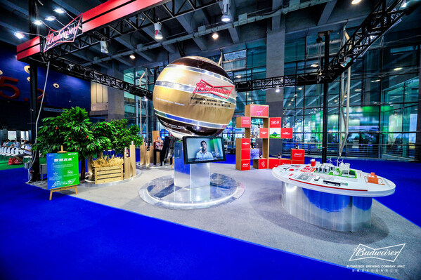 百威作為可持續(xù)發(fā)展的先行者,本次展臺(tái)遵循綠色低碳的設(shè)計(jì)理念,采用更具可持續(xù)性的材料分展區(qū)展示百威在ESG策略、綠色生產(chǎn)和綠色物流、水資源管理、智慧農(nóng)業(yè)、循環(huán)包裝等方面的豐碩成果。其中地球形狀的循環(huán)裝置采用了由百威啤酒糟回收制作而成的植物基皮革、環(huán)保紙等可回收再生的包裝材料,整體布局風(fēng)格充分體現(xiàn)了"綠動(dòng)未來"的參展主題特色。一直以來,百威將可持續(xù)發(fā)展理念貫穿業(yè)務(wù)始終,憑借極具前瞻性的戰(zhàn)略目標(biāo),配合強(qiáng)大的本土執(zhí)行能力,在本屆盛會(huì)交出了一份亮眼的綠色發(fā)展"成績單",吸引眾多嘉賓觀眾駐足參觀交流。