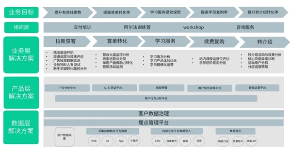 接下來,我們將從 5 大核心增長目標(biāo),4 層關(guān)鍵驅(qū)動要素,進一步了解神策數(shù)據(jù)職業(yè)教育 & 素質(zhì)教育解決方案。