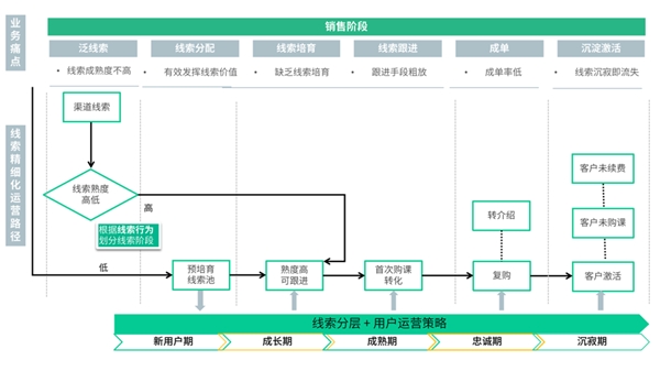 當(dāng)前,教培企業(yè)大多面臨著“大量公海線索難以管理,傳統(tǒng)電銷方式不僅耗費人力還打擾用戶”的困境,因此,設(shè)計一套可落地的線索分層培育體系是十分必要的。