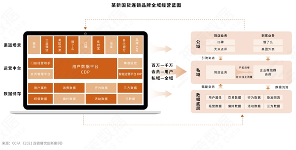 進(jìn)一步來(lái)看,國(guó)貨連鎖餐飲品牌需加強(qiáng)場(chǎng)景洞察能力,主要體現(xiàn)在客戶(hù)分層和客戶(hù)運(yùn)營(yíng)場(chǎng)景提煉上;餐飲行業(yè)對(duì)線(xiàn)下觸點(diǎn)強(qiáng)管控,天然具有將線(xiàn)下客戶(hù)向線(xiàn)上遷移的優(yōu)勢(shì),因此善于用戶(hù)運(yùn)營(yíng);國(guó)貨餐飲品牌在數(shù)據(jù)驅(qū)動(dòng)思維和數(shù)據(jù)反饋閉環(huán)的建立上還有較大的提升空間。