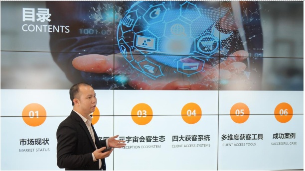 關(guān)于云展動力及鴻威元宇宙會客廳,鴻威集團云展動力負責人陳良玉介紹道,云展動力精準獲客平臺歷經(jīng)多年打磨,現(xiàn)已集合了數(shù)字孿生云展系統(tǒng)、大數(shù)據(jù)獲客系統(tǒng)、精準邀約系統(tǒng)、客戶管理系統(tǒng),形成了有效的智能獲客生態(tài)。針對“幫助企業(yè)獲客”的核心問題,云展動力重磅推出了元宇宙會客廳,能夠完美復刻企業(yè)實景,讓精準客戶不受時空限制,隨時隨地進入云展廳參觀,完成逛展會、看產(chǎn)品、游產(chǎn)線等實時互動操作,助力參展企業(yè)實現(xiàn)高效獲客,為國際采購商尋求優(yōu)質(zhì)供應服務商創(chuàng)造條件。
