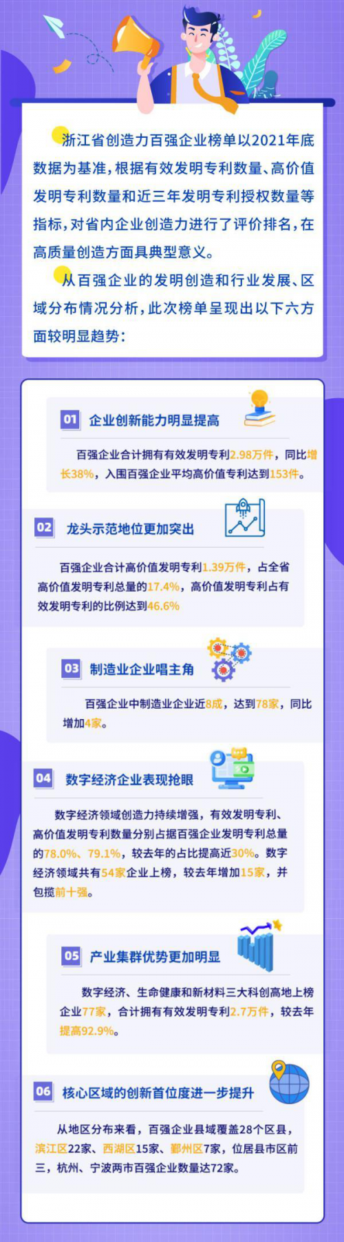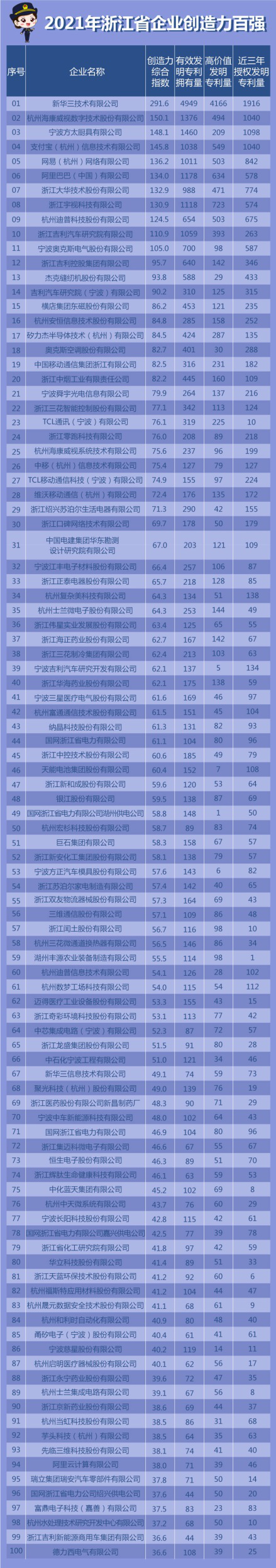 據悉,該榜單去年起首次發(fā)布,今年以2021年底數據為基準,根據有效發(fā)明專利數量、高價值發(fā)明專利數量和近三年發(fā)明專利授權數量等指標,對省內企業(yè)創(chuàng)造力進行了評價排名。