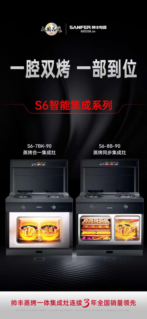 近日,大國品牌帥豐電器就從消費需求出發(fā),創(chuàng)新推出S6智能集成系列S6-7BK-90蒸烤合一集成灶和S6-8B-90蒸烤同步集成灶,將蒸烤功能、顏值、智能化、大火力、油煙吸凈率、品質六大維度能力全部點滿,有望成為風靡消費市場的新一代爆款好物。