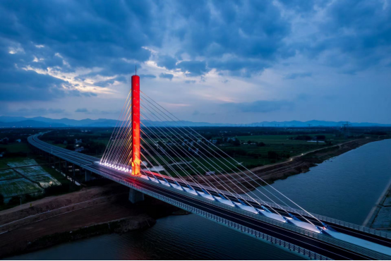 一橋飛架孔城河,從此天塹變通途。在日前通車的德上高速合樅南段,孔城河特大橋如一道長(zhǎng)虹凌空于孔城河上,其線型流暢平順,鋼結(jié)構(gòu)表面涂裝的“中國(guó)紅”色彩,讓大橋與周邊綠水青山的優(yōu)美景色融為一體,相得益彰。