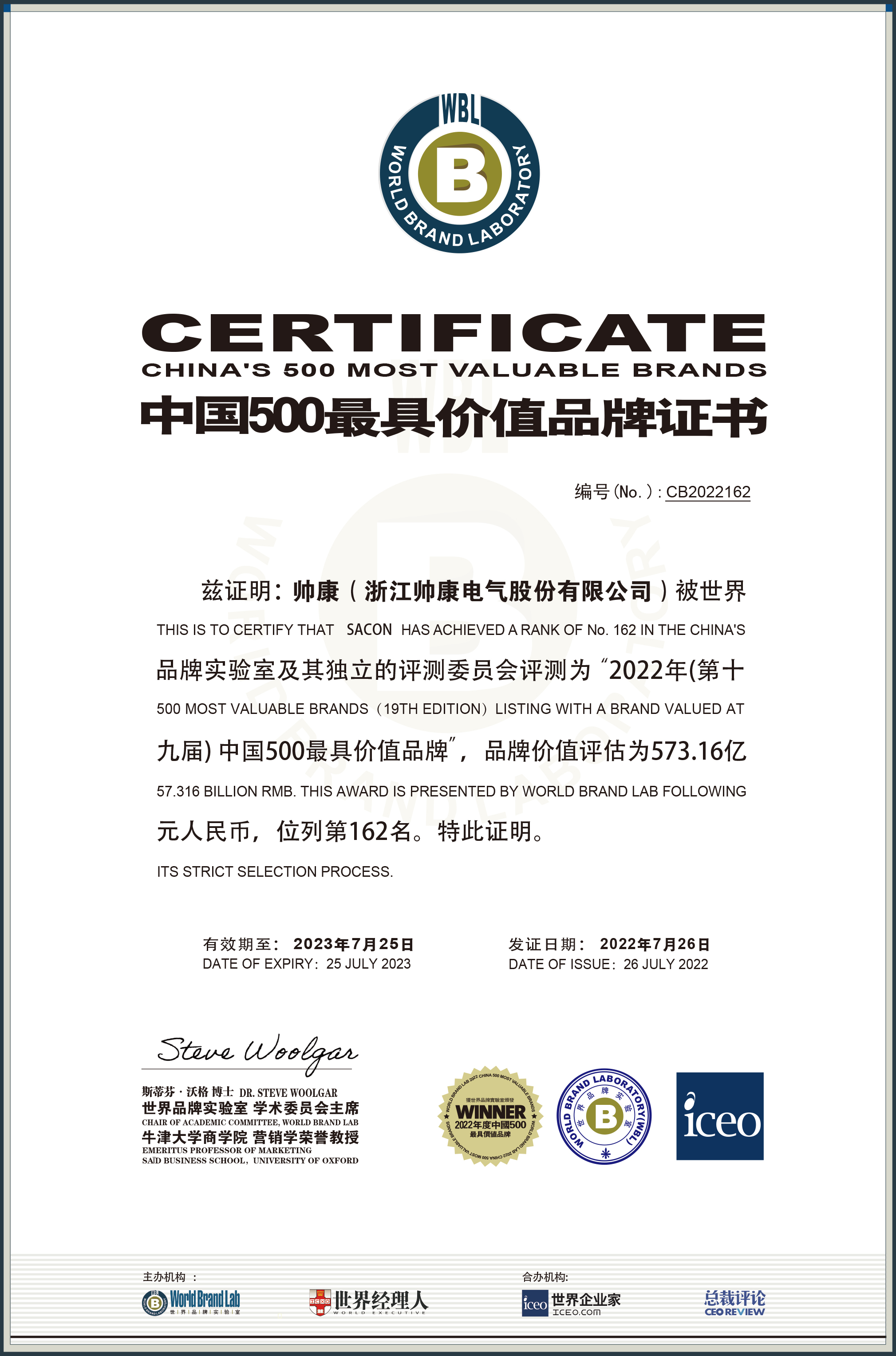 2022年(第十九屆)中國500最具價值品牌?證書