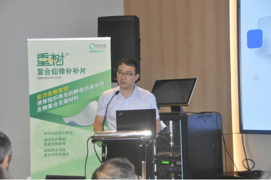 松力生物聯(lián)合創(chuàng)始人、副總經(jīng)理楊莉分享了松力生物的軟組織誘導(dǎo)性生物材料的研究進展,她介紹稱,松力生物可再生復(fù)合疝修補補片由松力生物自主研發(fā)的靜電紡親水性軟組織誘導(dǎo)性生物材料制成,此外,分享了這種新型復(fù)合生物材料在動物實驗中成功誘導(dǎo)骨骼肌、韌帶、肩袖、子宮壁、腸壁組織再生的研究成果。
