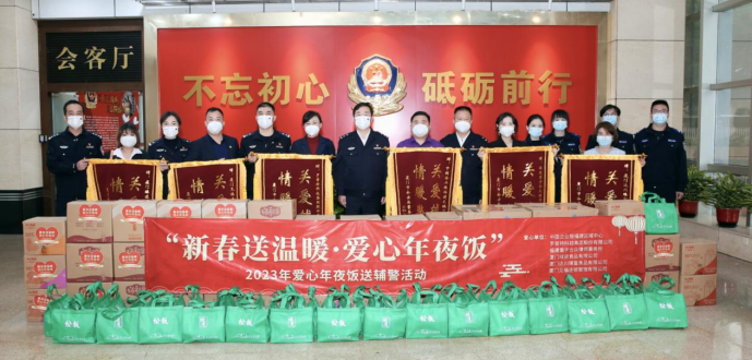 由中國(guó)企業(yè)報(bào)福建公司發(fā)起的“2023愛(ài)心年夜飯送輔警活動(dòng)”第三個(gè)中國(guó)人民警察節(jié)當(dāng)天在廈門市公安局大院隆重舉行,來(lái)自羅普特科技集團(tuán)股份有限公司、福建重宇合眾律師事務(wù)所、廈門綠進(jìn)食品有限公司、廈門達(dá)川臻富食品有限公司、廈門見(jiàn)福連鎖管理有限公司等愛(ài)心企業(yè)為廈門輔警支隊(duì)一線輔警送來(lái)了節(jié)日的問(wèn)候和預(yù)制菜、油、果汁等愛(ài)心年夜飯“大禮包”,以及口罩等防疫物資,向奮斗在在一線守護(hù)廈門城市平安的執(zhí)勤輔警表示感激和敬意。