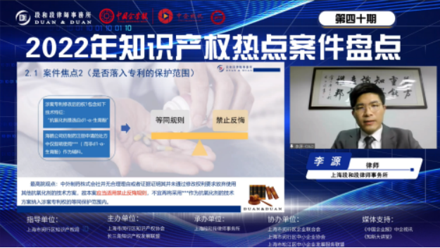 本期《知新大講堂》邀請到三位深耕知識產(chǎn)權(quán)行業(yè)多年的上海段和段律師事務(wù)所律師高璀璀、李源和丁浩,為大家進行2022年知識產(chǎn)權(quán)熱點案件的盤點剖析,希望借此機會回顧過去一年間知識產(chǎn)權(quán)界發(fā)生的熱議標志性知識產(chǎn)權(quán)案例,與各位知識產(chǎn)權(quán)行業(yè)人員及觀眾一起深入思考。