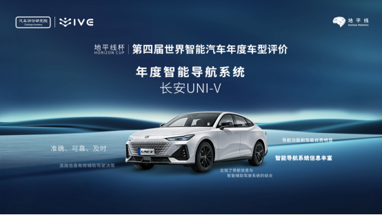 長(zhǎng)安UNI-V榮獲“地平線杯”第四屆世界智能汽車年度智能導(dǎo)航系統(tǒng)榮譽(yù)稱號(hào)。